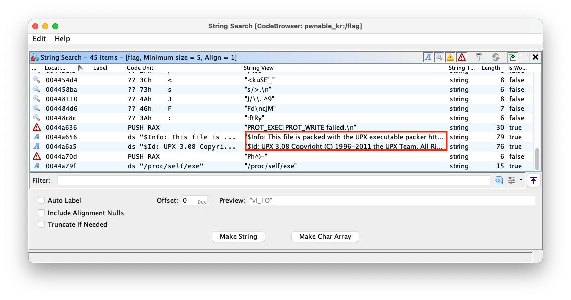 다른 쓸만한 문자열이 있을지 필터를 지우고 문자열들을 확인해 보았을 때, 다음과 같은 힌트를 발견할 수 있습니다.