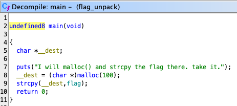 또한 코드를 살펴보면 strcpy(__dest, flag);를 확인할 수 있습니다.